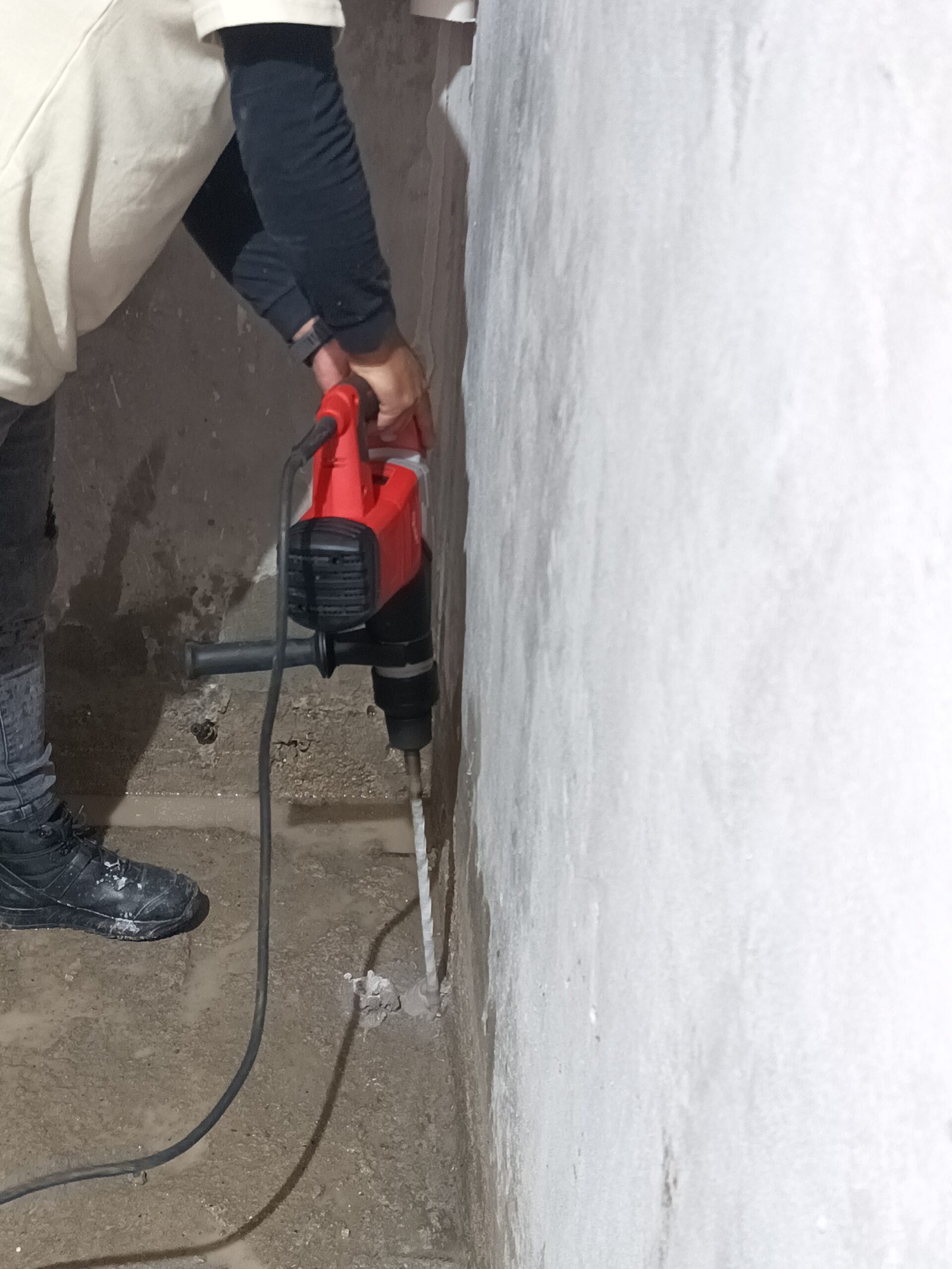 Este sistema consiste en perforar la base del muro y aplicar una inyección presurizada de resina hidrófuga o gel de poliuretano, que se expande dentro de los capilares del concreto, formando una barrera impermeable que evita el paso del agua.